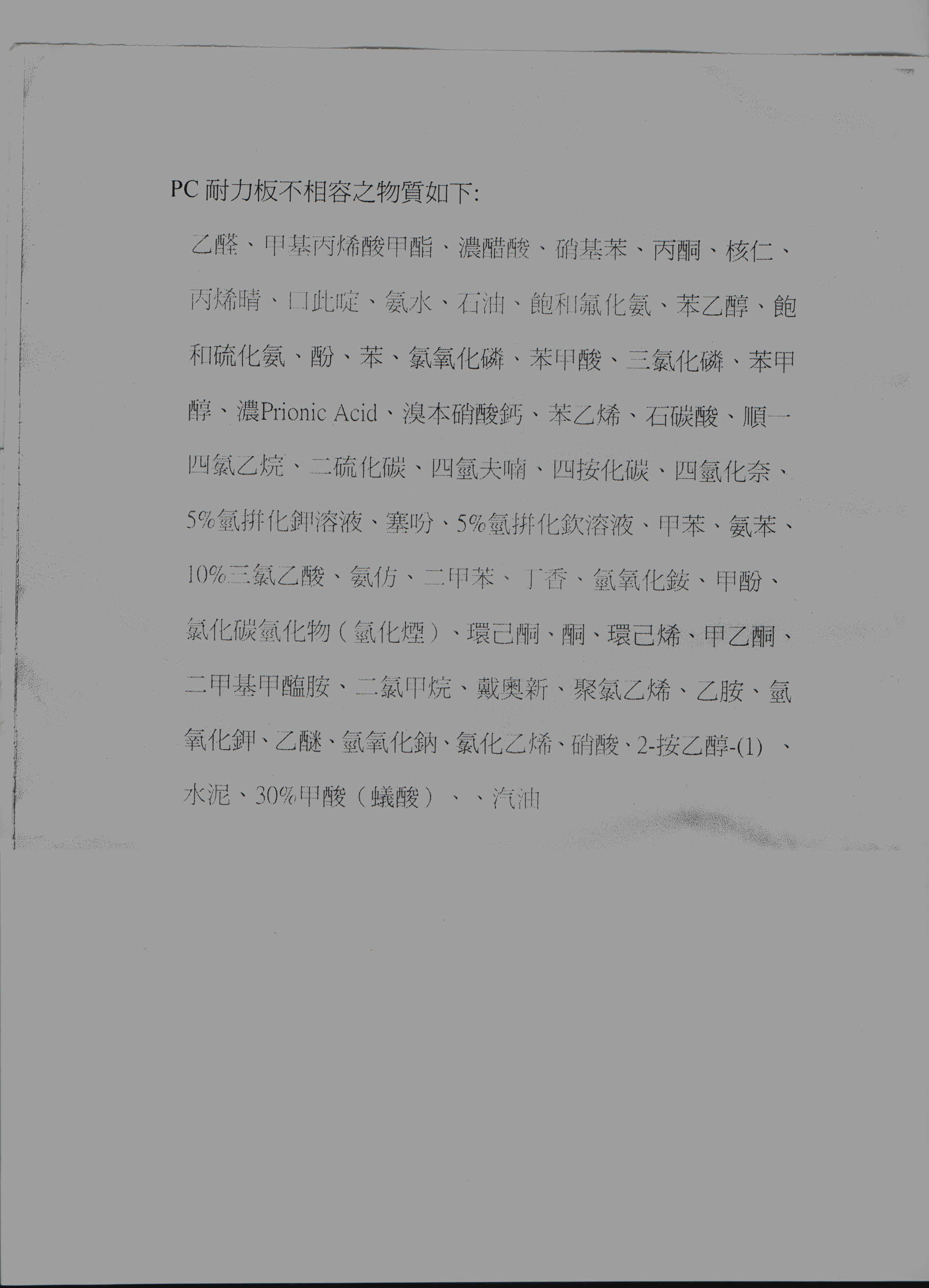 PC板不相容物質